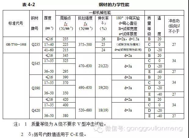 (2)伸長率比表4-2規(guī)定的數值低3%以內時容許使用,但不宜用于考慮塑性變形發(fā)展的構件。
