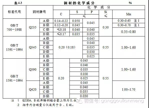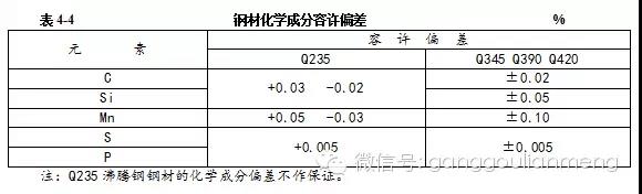 2. 鋼材的化學成分容許按表4—3與表4—4規(guī)定的標準有一定的偏差。